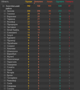 На території Золочівського району станом на 11.11.2020р. зареєстровано всього 722 випадки захворювання на COVID-19.