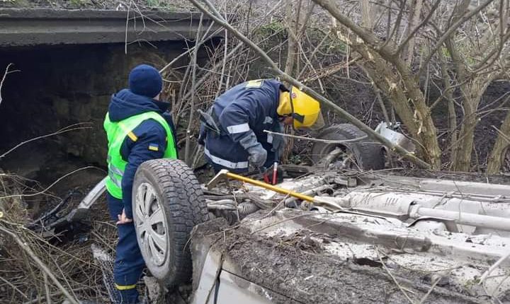 Працівники служби порятунку огородили місце транспортної пригоди та вжили заходів щодо попоредження виникнення пожежі, здійснили перекидання авто на колеса за допомогою лебідки.