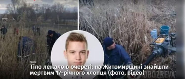 Про це розповіли у поліції області. Хлопця знайшли мертвим в очереті у водоймі на околиці Радомишля.