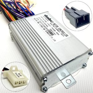 Контролери для безколекторних двигунів підбираються майже за тими ж параметрами, що і для колекторних, за винятком кількості та форми контактів підключення, так само варто враховувати параметри самого двигуна, наприклад наявність диференціала. Блоки керування для колекторних двигунів мають стандартний набір контактів, з якими квадроцикл може повноцінно працювати, а саме: роз’єм підключення акумулятора, ручки газу, замку запалювання, порту зарядного пристрою та підключення двигуна. Решта контактів можна вважати допоміжними.